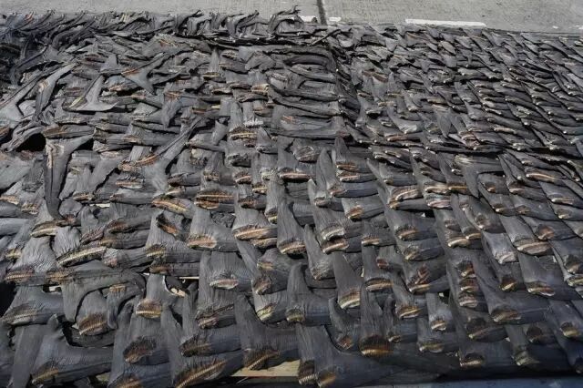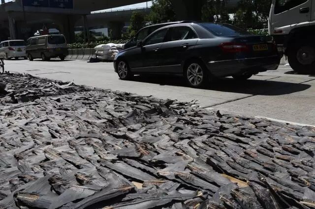 即便已经加强了对鱼翅的管制,但依然经常会在一些街道上,看到晒着的鱼翅,数量惊人...