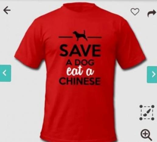 这种衬衫的意思很明确——中国人因为吃狗肉和鱼翅,一直以来被很多国家诟病。