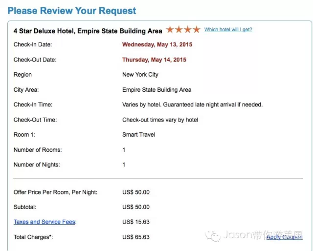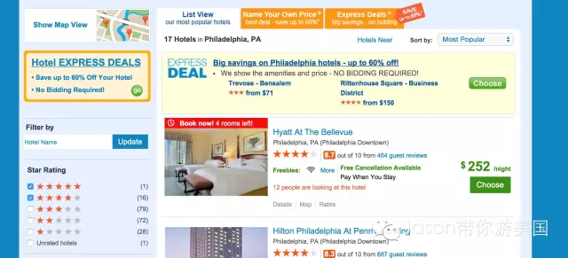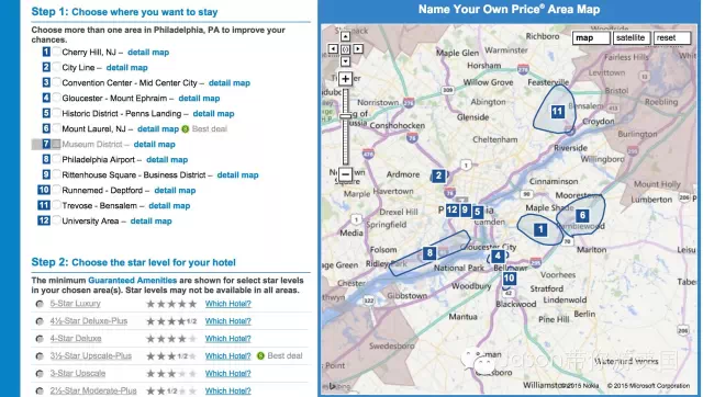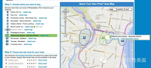 赞助商家(广告位:+1678-685-8086) 【攻略】手把手教你用priceline超低价订酒店 由 北美生活君 · 发布日期 2015年5月11日 · 已更新 2019年10月29日 Priceline是北美非常热门的订机票和酒店的网站,最大的优势在于,通过自己竞价(也就是bid)这种方式,可以用低于市场价很多的价格订到酒店。但是特殊之处在于,选择城市和时间后,你只能知道大致地理区域和星级以及用户评价,并不知道你竞标的酒店具体名字以及地址。只有在竞拍成功并付款之后才能知晓全部信息。 网友实战经验:1. 以105刀bid到纽约上西区4星级酒店,expedia参考价为280刀。 2. 以130刀bid到拉斯维加斯的5星级酒店,expedia参考价为320刀。 3. 以90刀bid到华盛顿的4星级酒店,expedia参考价为190刀。 适合人群: 此种bid订酒店方式不适合“说走就走的旅行”,适合出门前有做足攻略,行程确定,并预算有限的驴友使用,可以低价拿到酒店,也不会因行程变更而损失不必要的费用。 优点 1. 只要技巧运用的好,能以非常优惠的价格bid到理想的酒店(运气好可以比正常价格低50%,甚至更多)。 2. bid的过程刺激而神秘,可以满足赌徒心理。 缺点 1.如果不知道Priceline使用技巧猜不出底价,最后可能以高出底价许多的价钱bid,浪费预算(后文教你如何摸清底价)。 2.因bid成功前都不会预告酒店名,而bid成功立即信用卡扣款,万一拍到不满意的酒店,也不可退改(后文教你如何猜中酒店)。 3.如果给出的价钱太低,bid失败,必须更改条件才能立即再bid(比如增加地理区域,改变酒店星级),若想在相同条件下再bid,必须等待一小时,浪费时间(后文教你如何立刻再bid)。 4.如若行程临时变动,也不可退改,钱就打水漂了。 如果能在bid之前摸清底价,猜中酒店,就能将预算将至最低,又避免拍到不满意的酒店,最大限度的减小Priceline的风险,从而使“盲目bid”变成了“有目的bid”。关于如何在Priceline拍酒店,如何以接近底价拿到酒店,以及如何在bid时猜中酒店,请看下文全面扫盲。 操作步骤 1. 输入http://www.priceline.com/,打开网站看到如下首页。 2. 往下移,找到如下窗口。 3. 点击宾馆的图标,弹出如下窗口,输入你要去的城市名,对应的入住时间,需要的房间数。此文以纽约为例,于是我们输入5.13-5.14号,纽约,1间房。 4. 点击“Bid Now”,看到如下界面。 Step1:可以更改目标城市,入住时间,房间数量等。 Step2:左边列表的数字对应右边地图,选择你的目标区域。 Step3:选择你想入住的酒店星级。 Step4:输入你的bid出价。 手把手教你如何猜中底价 假设选择区域6(帝国大厦周边),4星级酒店,先输入30元,得到如下图红色提示框提示:这个价钱几乎没有可能性bid成功。 尝试加价10刀,输入40刀,现在得到新提示:这个价钱bid成功的可能性非常小。 再加价10刀,输入50刀,现在提示消失了,说明底价位于40-50刀之间。 为了确定底价,我们降价5刀,输入45,红色提示框又出现了:这个价钱bid成功的可能性非常小。 现在我们已经基本确定,50刀左右就是底价了。输入50刀出价,输入入住人姓名,点击确认,来到如下图新页面。 这个页面上给出了所有已知的信息:入住时间,城市以区域,入住人姓名,房间数,以及你的出价。点击确认后,就要输入付款信息了。请再次注意,bid一成功,就会告知你具体的酒店,此时如若你不满意,也不能退改。因此,能在bid前猜中酒店就显得尤其重要。 手把手教你如何猜中具体宾馆 假如我们想订一间费城附近,在5.20入住的酒店。首先输入城市和时间。 待出现搜索结果之后,选择Name Your Own Price 这样可以看到你能够选择的区域划分。 比如我们要选择市中心区域9,Rittenhouse Square 区域的酒店。 记住这个区域,然后点开Express Deal。你会发现Express Deal的分区基本与Name Your Own Price一致。 然后与Priceline合作的酒店有三家,三星半到四星半。然后你再点开list view,勾选四星、五星酒店。 点开地图,你会发现这个区域里只有两家四星半酒店,其中便宜的一家是Sofitel Philadelphia。基本上你bid成功的就会是这家酒店。那么如果你对这个酒店满意的话,就可以开始bid了。 然后按照上文所说的价格开始逐步bid。 其实Name your Own Price一般不会比Express Deal低很多,可能便宜20-30USD,如果觉得从底价开始bid的小伙伴觉得反复次数太多很麻烦的话,可以从Express Deal减去30USD开始bid。 最后小编以110USD,成功bid到了Sofitel,比list价格便宜了50%,比Express价格加税约便宜了15USD。 手把手教你如何在相同条件下立即再次bid 已经大概确认了bid到的酒店,也摸清了底价。但是万一bid失败,需要立即bid时,必须更改条件(比如增加地理区域,改变酒店星级),若想在相同条件下再bid,必须等待一小时,这样就太浪费时间。一个最简单的小tips就是在浏览器中清除历史记录和cookie,重新打开浏览器,就可以再次bid了。建议大家以5刀或者10刀为涨幅逐渐加价直至成功。 北美高昂的宾馆费一直是大家出行的心头恨,现在有了这么好的订酒店利器,你还在犹豫什么?赶紧拉上你的爸妈恋人基友们,一起出门看看吧! 世界这么大,还没想好去哪里玩?还不知道怎么安排旅行?关注我们获得更多旅游资讯和详细攻略!更多干货,尽在Jason带你游美国!