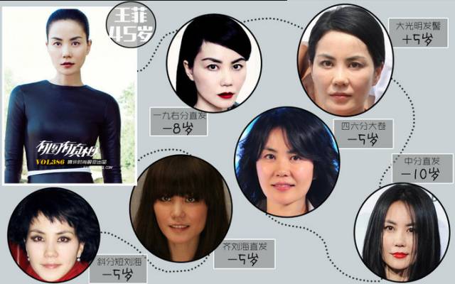 王菲:虽然已经是两个孩子妈的王菲今年已经 45 岁了,但出道这么多年可不是在圈里白混的,不老的容颜只要没有太大失误,基本上都是美美哒。话虽如此,但飘逸的大波浪还有严肃的小侧分还是不要再有了。