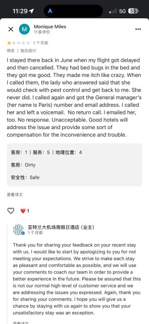 然而,随后几天里,她多次拨打该“经理”电话、留言,却始终无人接听、也从未得到任何回复。她随后在 Google Reviews 上查询该酒店的评价时发现,并非只有她遇到这种情况——已有多名住客公开留言投诉:酒店提供的经理联系方式长期无人接听,留言也石沉大海,甚至有人怀疑该号码只是一个摆设,根本无法联系到实际负责人。