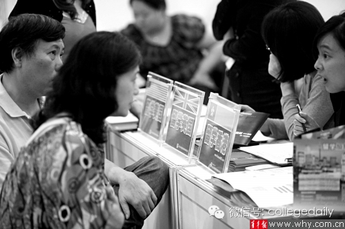 在北京的留学中介机构“圣地”中关村、地铁站里、路边的广告牌上及商场门口分发的宣传单中,几乎到处都在张贴着各大留学机构醒目的宣传语(形形色色的描述),加上各种海外名校校徽Logo的召唤,还有目前申请留学的大军所呈现出来的井喷之势,越来越多的家长都已经有了把孩子送出国念书的打算。当然,走留学中介这一条路,还是占据了绝大多数家长的选择。
