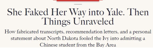一名刚入学的华人女学生,因为伪造身份与申请材料,被耶鲁大学当场撤销录取资格,校警护送离开校园。