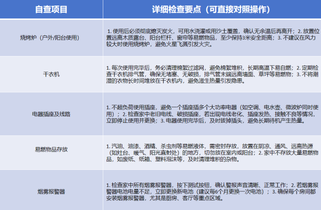居家环境是防火的重中之重,尤其是高温干燥天气下,各类电器、易燃物品都可能成为“火灾隐患”。以下自查清单,建议大家今天就逐条检查,做到防患于未然: