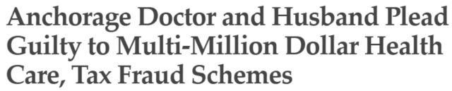 阿拉斯加安克雷奇一名风湿科医生及其丈夫近日被联邦检方起诉,指控二人在长达13年的时间里涉嫌实施1252万美元的医疗保险欺诈、逃税,并对部分患者进行未经明确同意的注射操作。