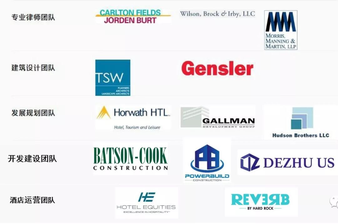 World Class Team顶尖团队03凯胜百瑞城市综合体项目由各领域的顶尖公司合力完成。建筑设计方面,酒店和公寓分别由两所不同的建筑院承担设计工作,各建筑师发挥其最拿手领域的长处,以保证整体项目的最佳效果。酒店由Gensler建筑设计事务所完成——Gensler是国际著名的建筑设计、规划与咨询公司,在其提供综合性设计服务的能力方面是独一无二的,在全球享有极高声誉;公寓设计方为TSW,是一家立足于亚特兰大的精品建筑设计公司,凭借其对亚城深入的了解,使得他们可以完成既符合当地,又独具个性的设计。酒店项目的建筑团队则由Batson-Cook担任总承包商;超过100年的建筑行业经验,使其成为美国东南部首屈一指的建筑组织之一,在全美共有四个办事处,其业务范围涵盖了整个东南部的几乎所有主要行业,包括教育,医疗保健,酒店等。目前,综合体其余部分的施工由德筑旗下力筑建筑公司——PowerBuild进行。