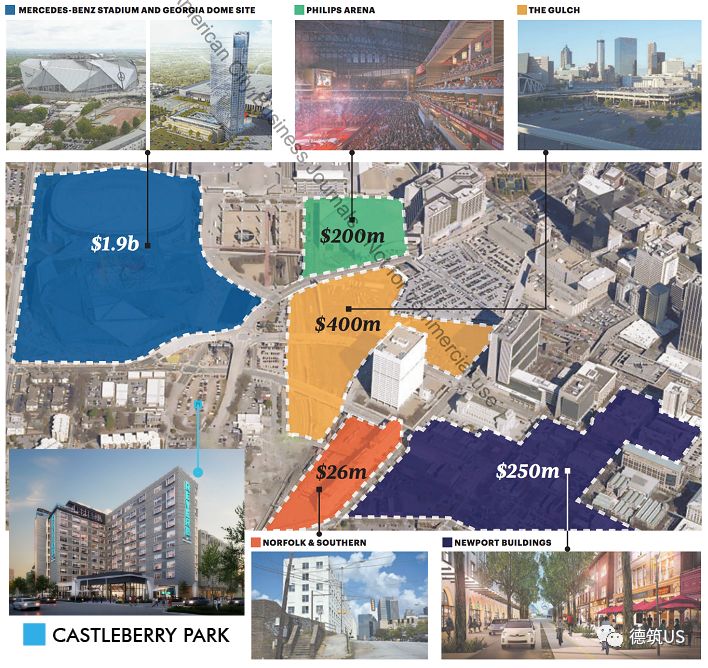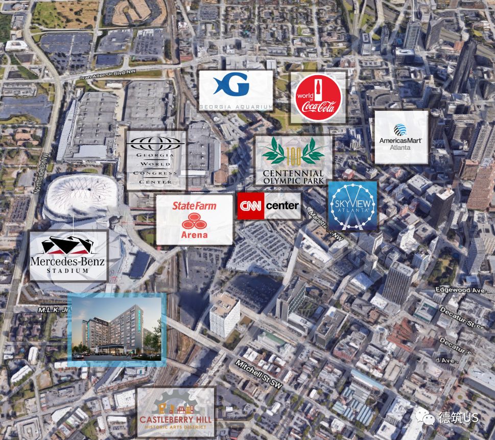 凯胜百瑞城市综合体Castleberry Park by Bolton Atlanta LP凯胜百瑞城市综合体Castleberry Park城市综合体是最先进的地产开发模式;同时也是所在城市矗立的地标式建筑。项目所在位置均为城市核心区,有极高的人口流量和绝佳的消费基础,是城市经济的最新增长点,更是当地政府着重开发的地区。自立项起即获得了各界的极大的关注:420万美元政府现金补贴、多家媒体争相报道、副州长发表讲话、亚城风云人物齐聚酒店开工仪式……只因为我们的——凯胜百瑞城市综合体(Castleberry Park by Bolton Atlanta LP)。凯胜百瑞项目(Castleberry Park by Bolton Atlanta LP)是位于亚特兰大市中心(Downtown),首屈一指的城市综合体项目,是德筑US的诚心力作之一,其动向一直受到各大媒体的密切关注。▲媒体大版面报道Castleberry Park城市中心01凯胜百瑞项目地处城市最中心位置,毗邻斥资16亿美元的梅赛德斯 - 奔驰体育馆和美国篮球协会(NBA)的State Farm体育馆(State Farm Arena),可步行到全美第二大佐治亚世界会议中心(Georgia World Congress Center),美国有线电视新闻网CNN中心总部,可口可乐中心等各著名景点,以及各级美国联邦佐治亚州,和亚特兰大市政府办公楼。项目地处凯胜百瑞山(Castleberry Hill),是美国联邦历史城区(Federal Historic District),具有历史悠久的传统经济和独具特色的新兴人文艺术,是全美排名最高的艺术与文化城区之一,其开发受到美国各级政府的高度重视,并于2006年成为亚特兰大市地标区。随时涌入的的小型艺术画廊,餐馆,咖啡馆和艺术住宅,让这里变成亚特兰大极有特色的城中艺术社区。凯胜百瑞城市综合体项目也是亚特兰大中心商务区(Central Business District,CBD)的西南入口,紧邻亚特兰大综合客运大楼(Atlanta Multi-Modal Passenger Terminal,MMPT), 美国南部铁路集散中心,以及三条主要联邦州际高速公路(I-75,I-85,和I-20),交通发达便利。亚特兰大市中心区域不仅有浓浓的人文艺术气息,更包含日益蓬勃的商业。本周刚刚批准的市中心Gulch开发协议,为运输巨头诺福克南方公司(Norfolk Southern)5.75亿美元的新北美总部完全做好了准备。 同时,亚特兰大市议会通过立法,决定对与凯胜百瑞项目仅一街之隔的Gulch,进行高达50亿美元的重建,这是一个停车场和铁路之间的集合项目,包括梅赛德斯 - 奔驰体育场和State Farm体育馆。Reverb by Hard Rock项目概况02项目包括Hard Rock旗下全球首家精品酒店——Reverb by Hard Rock,全封闭管理停车楼,高档公寓楼,和A级底商临街零售店面为主体的综合项目。▲名副其实的“黄金”地带▲酒店发布会前,媒体为项目大面积预热千呼万唤始出来——Reverb by Hard Rock的酒店发布会在Hard Rock Café成功举行。德筑US集团,Hard Rock及Reverb品牌代表,酒店管理公司Hotel Equities, 设计公司Gensler, 亚特兰大旅游局(ACVB),和众多媒体代表纷纷出席。同时,酒店项目受到了各方媒体的密切关注关注和大量报道;项目地处可容纳超过7万2千人的奔驰体育馆的马路对面,酒店开业后将被世界众多球迷和游客所瞩目。酒店项目高11层,有197 套高级客房,2020年开业,具有极高的商业效益和社会价值。Reverb是Hard Rock独创的生活方式品牌酒店,旨在为音乐、艺术和体育爱好者们提供完美的入住体验。酒店客房按照四星级标准建造,具有世界领先的科技和独特风格的艺术品收藏。住客还可以体验Reverb独有的Roadie Room,其中包含极具创新意义又符合酒店音乐特色的卡拉OK设备。这种针对亚特兰大丰富旅游,商业,体育,文化资源的高级舒适配置,使得酒店本身更具吸引力和竞争力。▲酒店房间面积按照四星级标准打造,创新的房间布局,并含有沙发床设计,灵活运用,尽享音乐活力