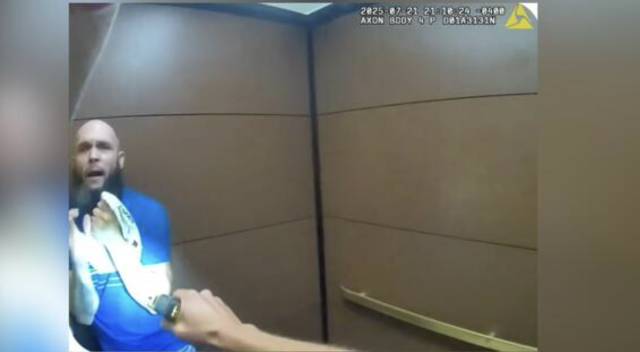 事实证明,电梯的速度比不上警察的冲刺速度。Cpl. D’allaird和同事直接冲进酒店大堂,三两步追上,还没等他享受“关门逃生”的瞬间,就给他按在电梯门口铐起来。
