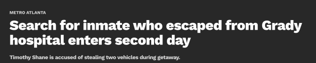 12 月 1 日凌晨 1:20 分,52 岁的 Timothy Shane 从 Grady 医院中挣脱监管。