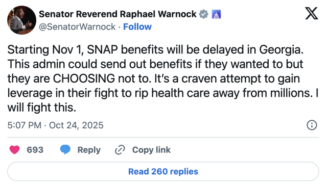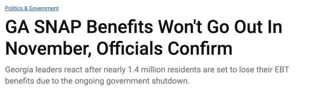 无论是4200万全美受助者,还是佐治亚州140万依赖每月187美元粮食券维生的居民,他们都正在为一场政治停摆付出代价。