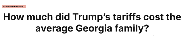 考虑到佐治亚州较高的生活物资和原材料进口依赖度,部分研究(如 The Budget Lab at Yale)测算的本地家庭购买力损失甚至更高,处于 1,200 至 1,700 美元区间。