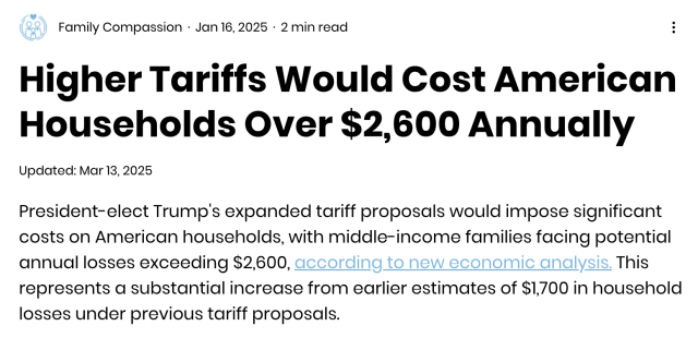 - 2025 年平均支出: 全美家庭因关税间接增加的成本约为 1,000 美元。
