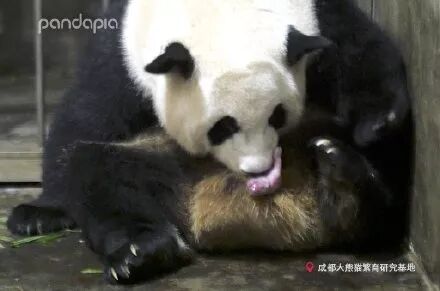 虽然初为“熊母”,但在熊猫宝宝出生后的短短两分钟后,”阿宝“便将宝宝抱在了自己的怀里,还不停地舔舐着它们。