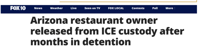 在被美国移民与海关执法局(ICE)拘押长达8个半月后,亚利桑那州西谷(West Valley)寿司店华裔老板Kelly Yu终于获释,并与家人团聚。