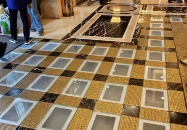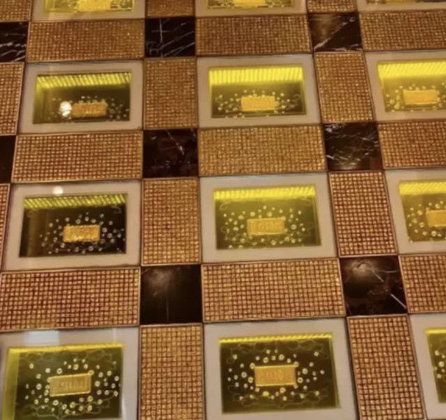 每当人们踏入澳门英皇娱乐酒店大堂时,一定会被震撼。脚下的地板上镶嵌了78块金砖,每块1公斤。