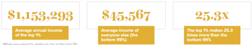 据《商业内幕》(Business Insider)报道,美国经济政策研究所(Economic Policy Institute)数据显示,在全国范围内,最富有家庭(Top1%)税前平均要达到$389,436,他们的平均收入是美国人平均收入$45,567的25.3倍。
