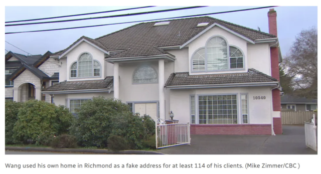 他利用他在列治文的家,为至少114名客户伪造了地址。