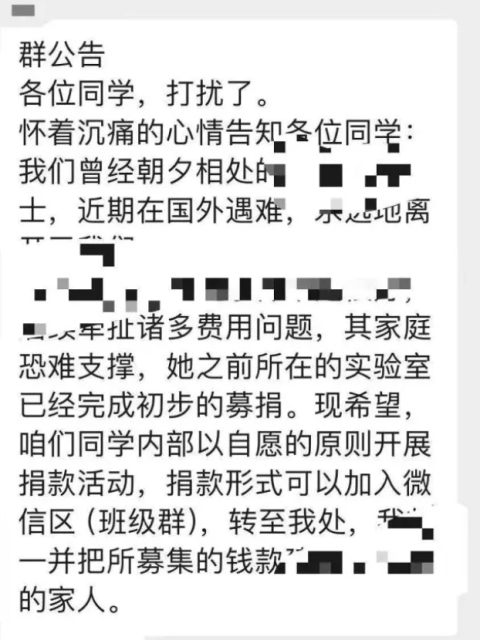 得知噩耗后,当时大学班长赵先生组建了一个群聊,希望为丽丽的父母筹集赴德旅费。他强调,消息让人非常遗憾,“(丽丽)真的是一个很努力、很朴素的人”。