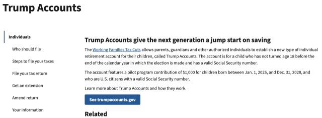 账户将于2026年7月开放存款,但合资格子女的父母现在即可使用国税局(IRS)的4547表进行登记。