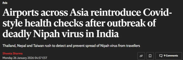随着印度出现尼帕病毒(Nipah virus)感染病例,多地卫生部门与机场已恢复类似新冠疫情时期的入境监测、健康筛查与隔离措施,防止疫情跨境扩散。