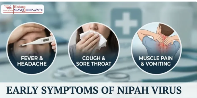 初期症状包括:发烧、头痛、喉咙痛、呕吐、肌肉疼痛