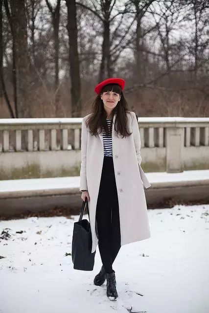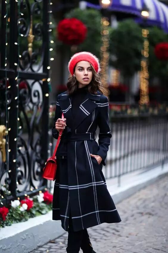 红色贝雷帽,温柔淑女新年必备单品。