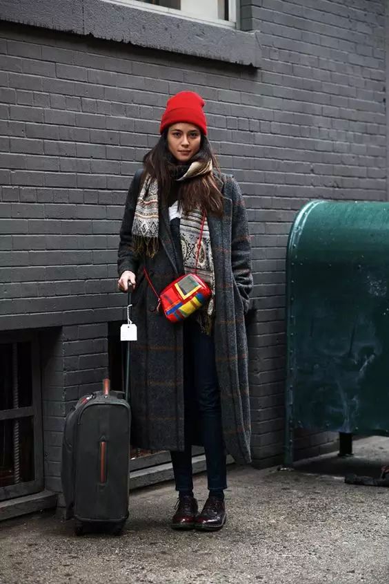 红色毛线帽+ 红挎包,走在街头出挑又不做作。