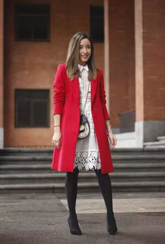正红大衣+浪漫白蕾丝裙,有年味又浪漫减龄。