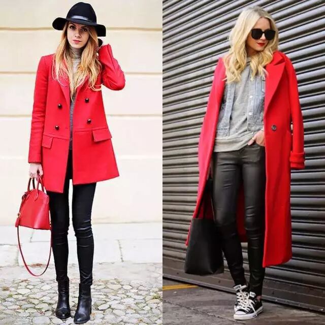 H型及膝款红大衣百搭又耐穿。