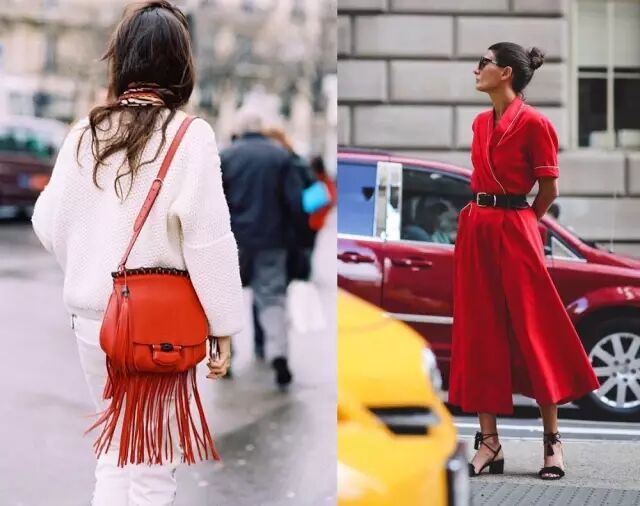 红色挎包喜气不突兀,瞬间点亮沉闷着装。