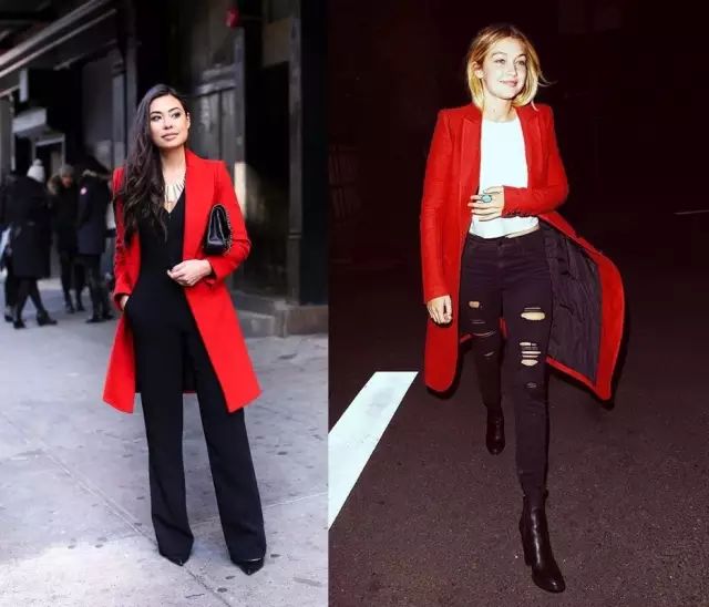 一件大红色的外套最能点题,适合大年初一穿起来去拜年。红大衣的搭配很简单,基础的黑白灰就能很得体。
