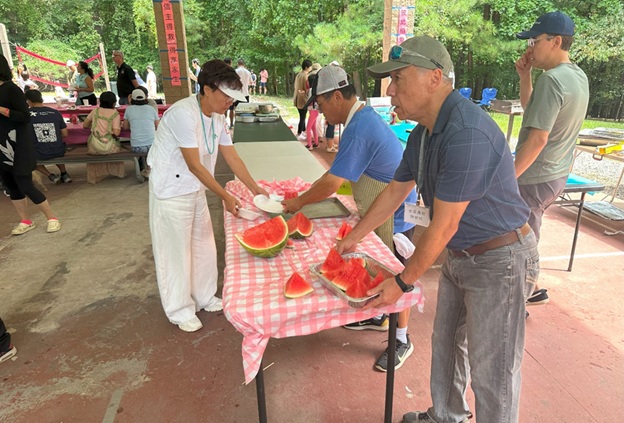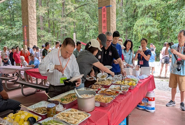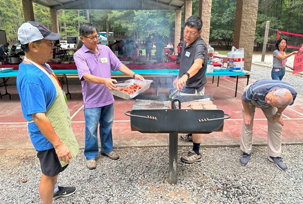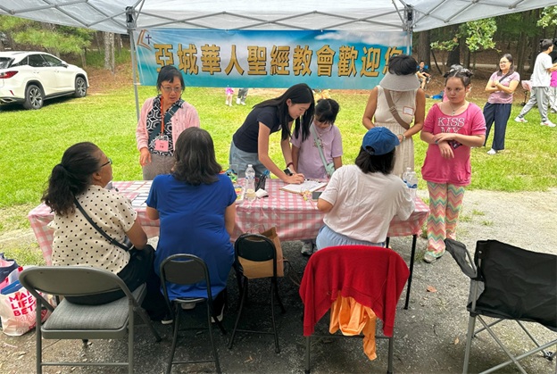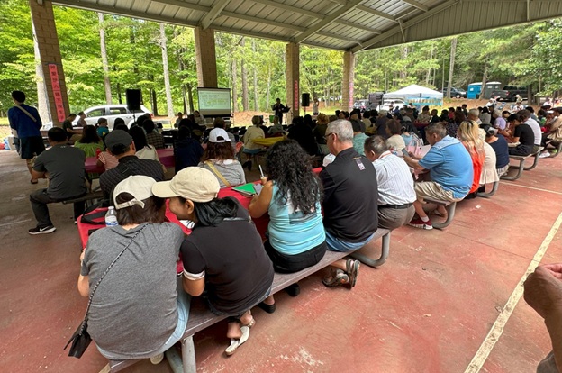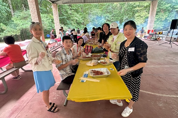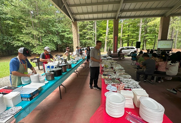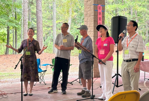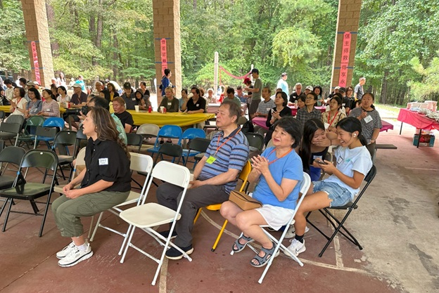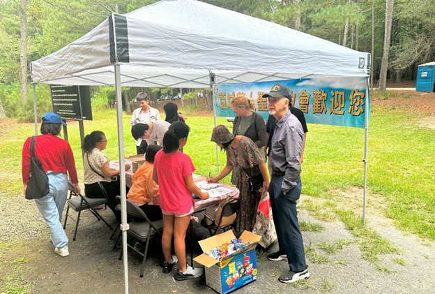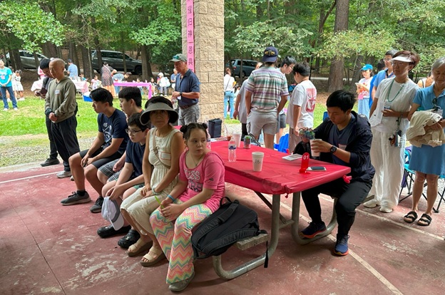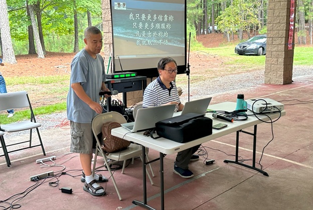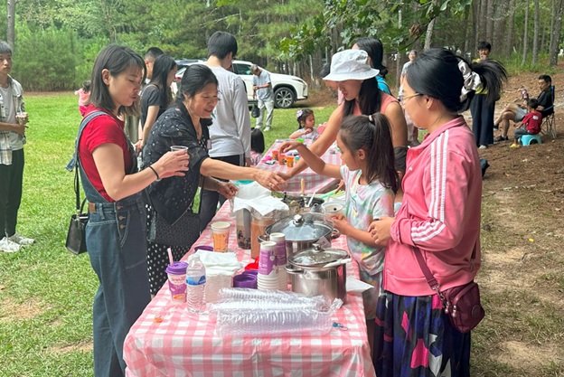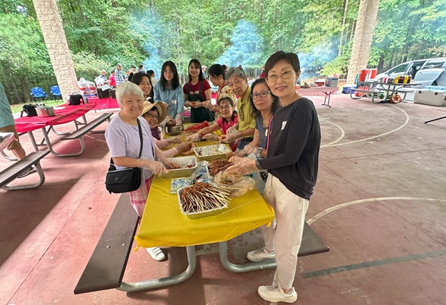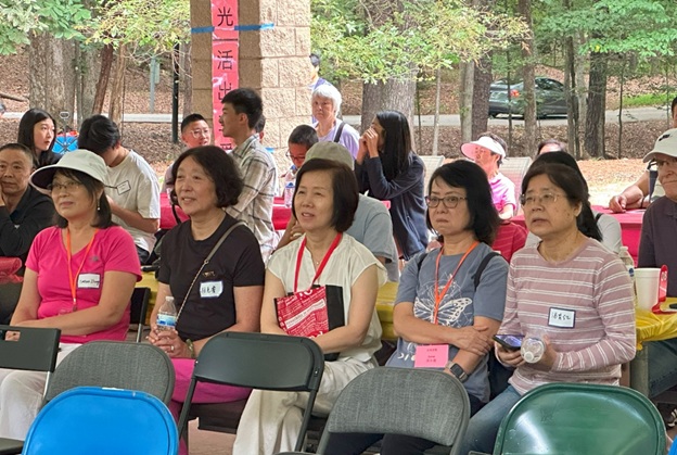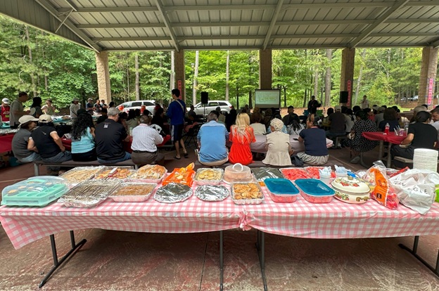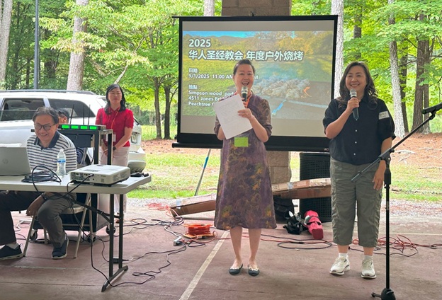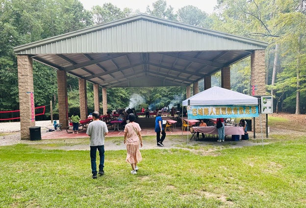 上午 11 点起,弟兄姐妹和社区朋友们从亚特兰大四面八方陆续赶来,在大棚下热切相聚。12 点钟,诗班用悠扬的歌声拉开序幕,盛曉玫的《脚步》等熟悉的诗歌在林间回荡,大家齐声歌唱,心中满是感恩与平安。