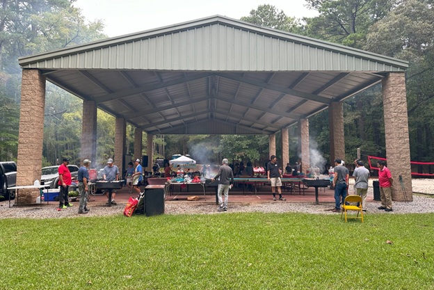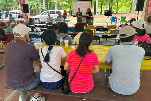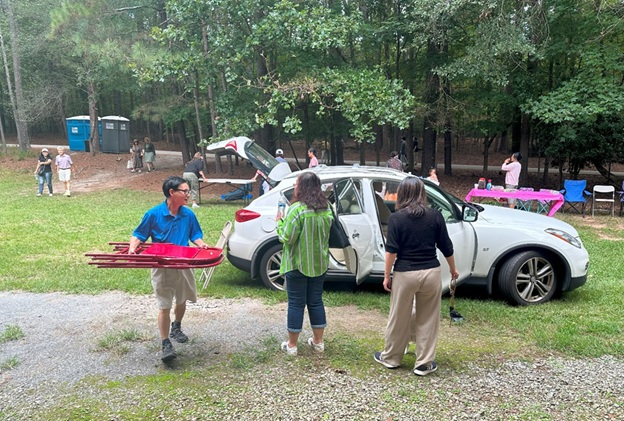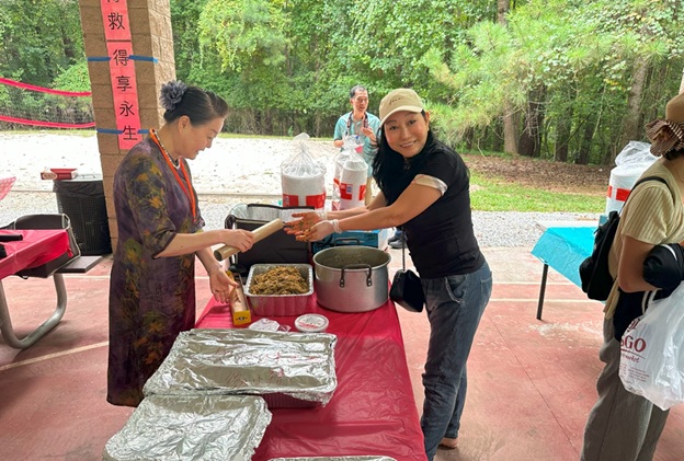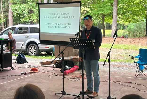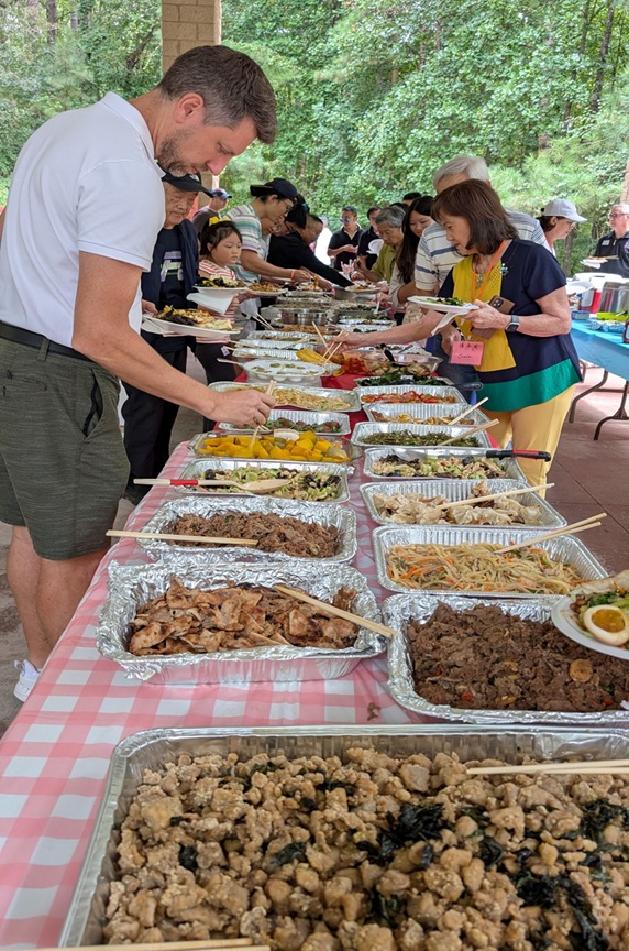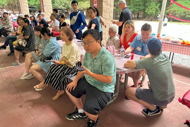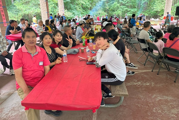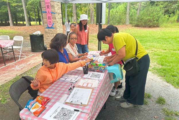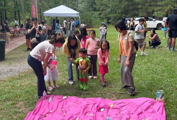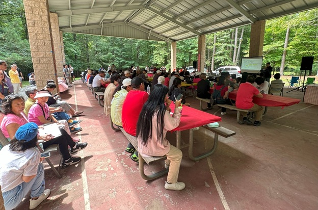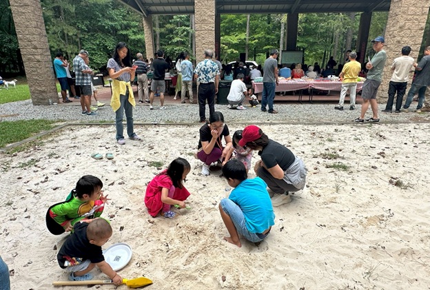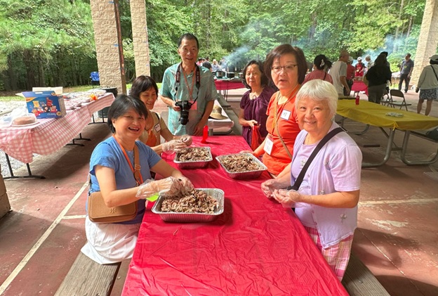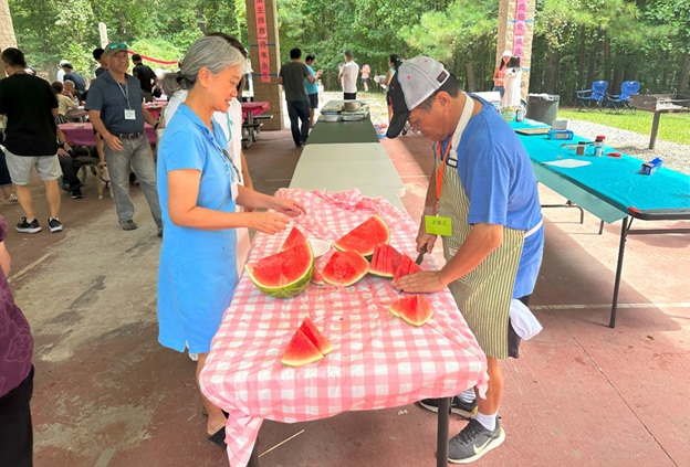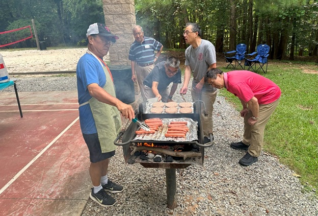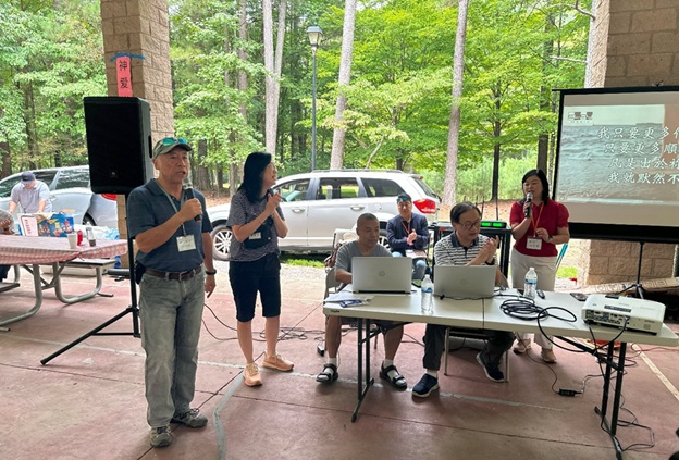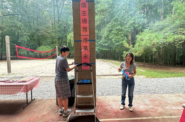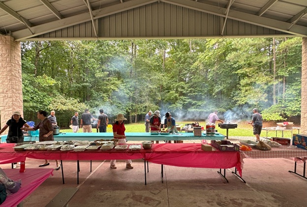 上午 11 点起,弟兄姐妹和社区朋友们从亚特兰大四面八方陆续赶来,在大棚下热切相聚。12 点钟,诗班用悠扬的歌声拉开序幕,盛曉玫的《脚步》等熟悉的诗歌在林间回荡,大家齐声歌唱,心中满是感恩与平安。