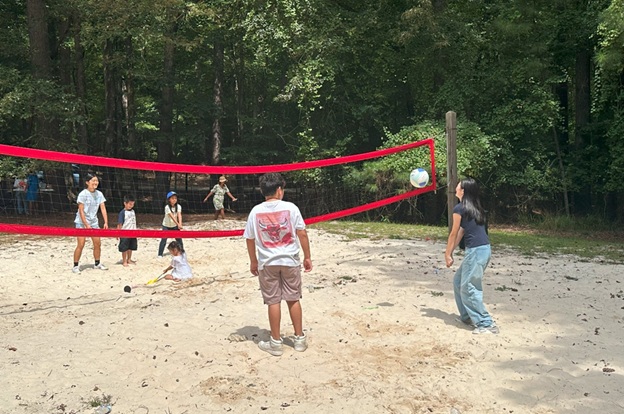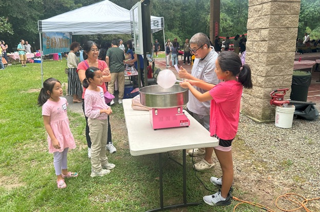 午餐时间,丰盛的烤肉与美食摆满桌案,大家边享用边交谈,欢声笑语此起彼伏。孩子们的身影更为现场增添了无限活力:他们奔跑在草地上,玩投掷标球和沙地排球,笑得天真烂漫;而手里的 Bubble Tea 和 Cotton Candy,更为节日增添了一份甜蜜。