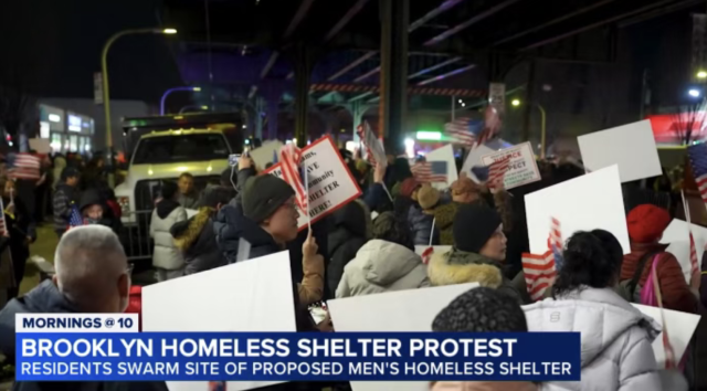 据侨报及纽约邮报报道,布鲁克林86街游民所开发商29日(周日)晚间在警察的护航下突然动工,向建址送入多辆卡车的物资,附近民众闻讯赶来将游民所围住展开猛烈抗议。