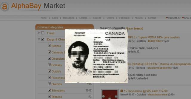 自去年5月开始,执法人员假扮顾客,从“阿尔法湾”上购买大麻、海洛因、芬太尼、冰毒、假身份证和ATM机盗刷器等非法物品。过程中,调查人员意外发现了“阿尔法湾”创办者兼管理员——加拿大魁北克省的25岁青年卡茨(Alexandre Cazes)。