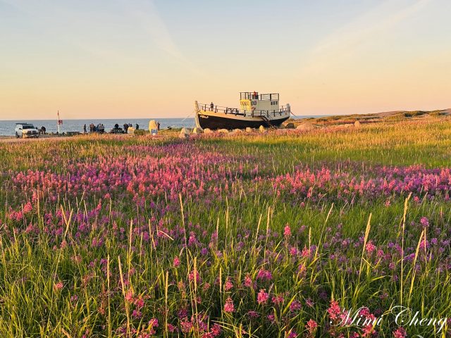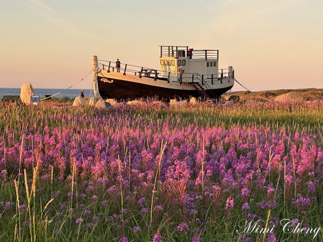 等待行李时,我被电视中正在播放的视频深深吸引——Fireweed岛上,北极熊悠然漫步于粉紫色的矮柳兰花海中,画面美得几乎令人窒息。