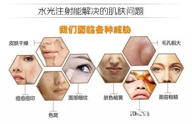 - 水光针:水光针是把(玻尿酸等)直接注射到皮肤真皮层的疗法。