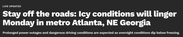 如果你住在Gwinnett、Forsyth、North Fulton或靠东北方向的郊区,请把这次当作一次真正的灾害天气来对待,而不是下点雪。