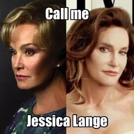 Caitlyn Jenner的女性造型曝光后,是不是觉得眼熟?很像《美国恐怖故事》女演员“兰姨”Jessica Lange?