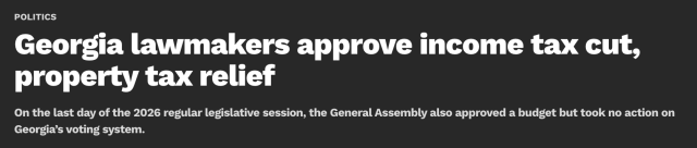 2026年4月2日,佐治亚州立法会最后一天,州议会通过了多项利好居民的税收减免措施,为本地家庭带来实实在在的减负。