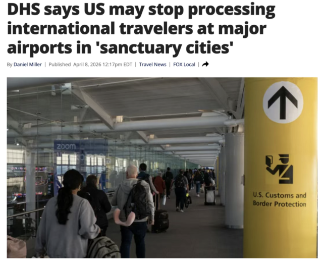 2026年4月7日,美国国土安全部(DHS)部长Markwayne Mullin发出强烈警告:如果部分“庇护城市”继续拒绝配合联邦移民执法行动,海关与边境保护局(CBP)官员可能会停止在这些城市的国际机场提供入境清关服务。