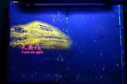 在紫外灯下,分别浮现颐和园和天津滨海新区,像是播放PPT一样,非常顺利的展现。