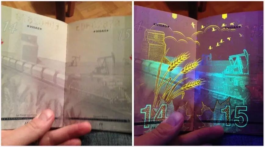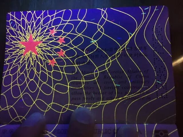 但是!!!直到有一天,扫描君也用紫光灯照了下自己的护照,那一瞬间同样被惊艳到不行!之前对我们国家护照的吐槽全部“啪啪啪”打脸。