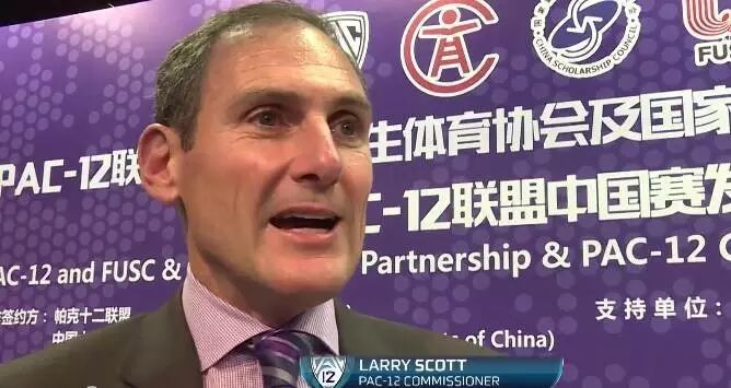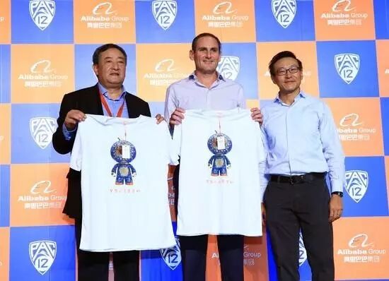 从左至右:中国大学生体育协会秘书长杨立国、美国Pac-12主席Larry Scott、阿里巴巴集团董事局副主席蔡崇信