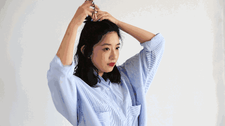 脸两侧拿下一点发丝,留有空气感会更自然。
