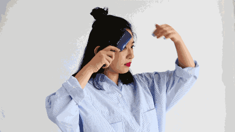 用双手从两边鬓角斜向上抓起三分之一的发量,