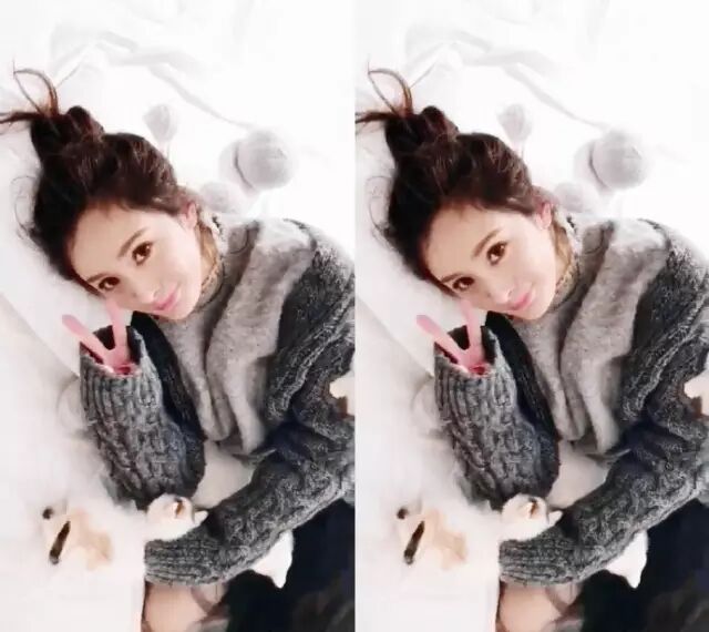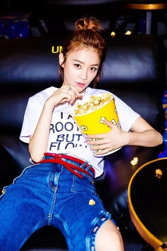 扎着慵懒丸子头的冰冰,嘟嘴卖萌变娇俏girl!