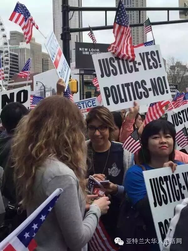 亚特兰大220挺粱和平聚会有条不紊,按预先策划地理性进行着,整个游行进行得平和、理性。连天公都相助,温暖没有艳阳,从聚集到缓缓散去,一直晴空万里,和煦漾着春意。直到游行结束,大家都上车了,才降下了淅淅沥沥的雨滴。