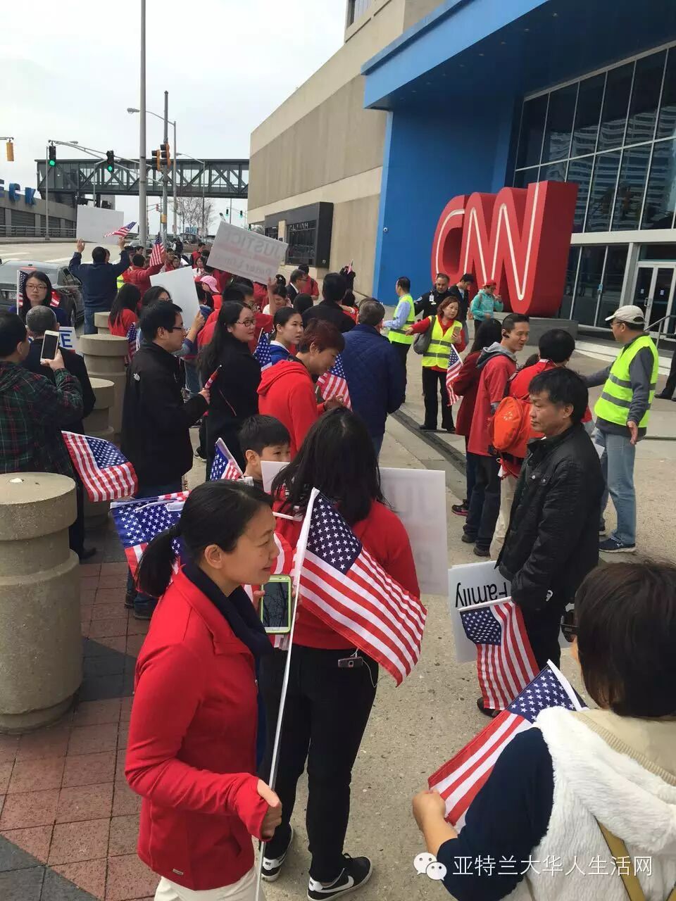 (ACCA现代中文学校孙天带领大家在CNN前喊口号)